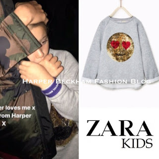 Harper was wearing Sequin Emoji Sweatshirt by ZARA kids.