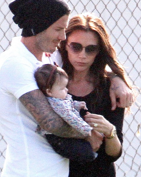 Harper Beckham and her parents enjoyed a sunny day at the soccer practice in LA on October 22nd 2011.