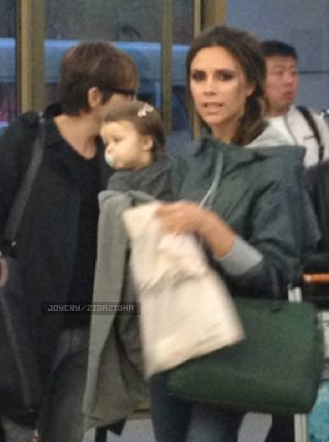 Harper Seven Beckham & Victoria pictured at the airport leaving Beijing and traveling to Hong Kong on April 24th 2012.